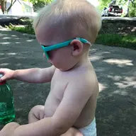 TO USE EAR ADJUSTERS: Our kids' ear adjuster pieces help create a better fit on infants or toddlers growing into a larger size. These baby sunglasses straps help tighten up the fit of the sunglasses arms, and are also made of a clear silicone material that is soft and flexible for baby’s ears. The ear adjuster piece slides up the arm of the sunglasses on each side. It should tuck behind your child’s ear, if the arm is too long and the glasses are sliding off their face.