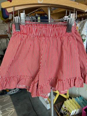 Müsli By Green Cotton Poplin Stripe Frill Shorts - White/Red Stripe