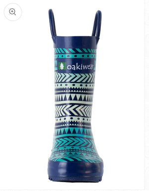 OAKI loop handle boots are designed to keep feet dry and comfortable in the muckiest of puddles, so your little adventurer can play all day in any weather! Features: •100% rubber exterior resists water and keeps feet dry. Our proprietary rubber blend offers superior flex and rebound and reduces odor. •Ergonomic zero-drop heel helps children develop strength and stability and encourages good posture. •Easy-on loop handles help kids get their boots on independently, so parents and teachers have