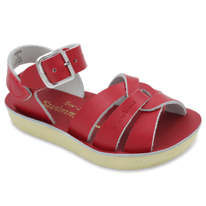 The Sun-San® Swimmer has a slightly narrower fit and, like all Sun-San® Sandals, the Swimmer comes on a lightweight, cushioned urethane sole. Rust-proof brass buckles and scuff-resistant, water friendly genuine leather make them ideal for in-and-out of water wear. They clean up so easily, and with proper care will last for years. These are great summer sandals.