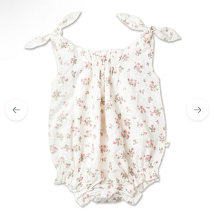 MakeMake Organic Tie Shoulder Bubble Romper - English Roses