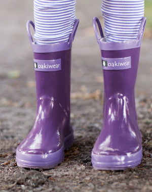 OAKI loop handle boots are designed to keep feet dry and comfortable in the muckiest of puddles, so your little adventurer can play all day in any weather! Features: •100% rubber exterior resists water and keeps feet dry. Our proprietary rubber blend offers superior flex and rebound and reduces odor. •Ergonomic zero-drop heel helps children develop strength and stability and encourages good posture. •Easy-on loop handles help kids get their boots on independently, so parents and teachers have