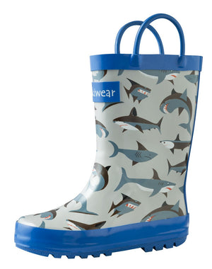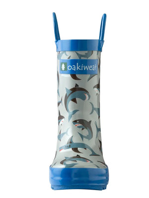 Oakiwear Loop Handle Rubber Rain Boots - Shark Frenzy