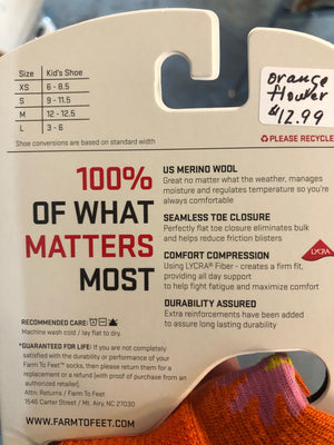 Farm to Feet Kids U.S. Merino Wool Socks - Orange Flower