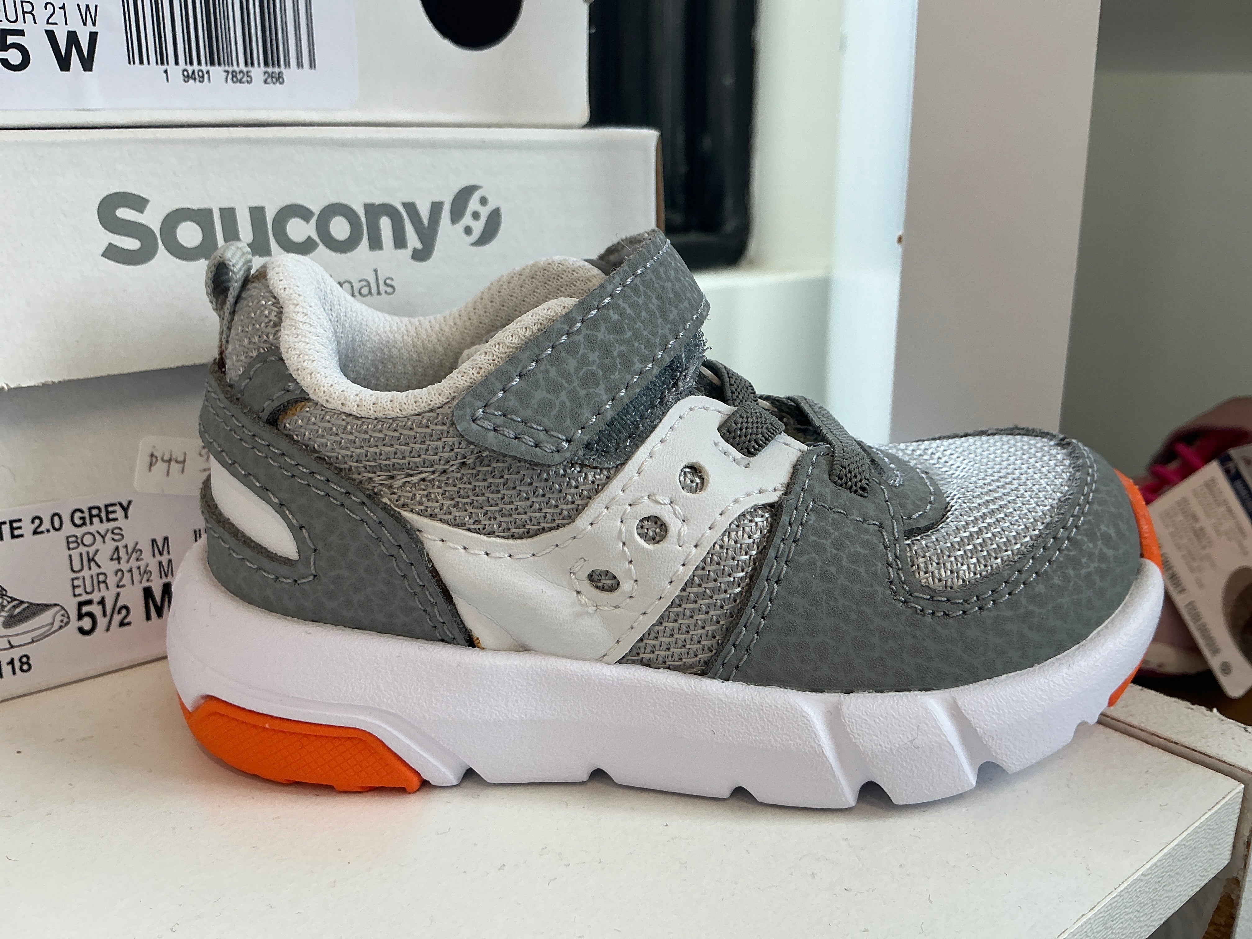 Inspired by the JAZZ™ collection, this machine washable shoe features the same retro design and lightweight leather and mesh upper, plus a helpful alternative closure that makes stepping in easy. They also feature reinforced toes for extra durability and a smiley face on the inside of each shoe helps your little ones tell left from right.
